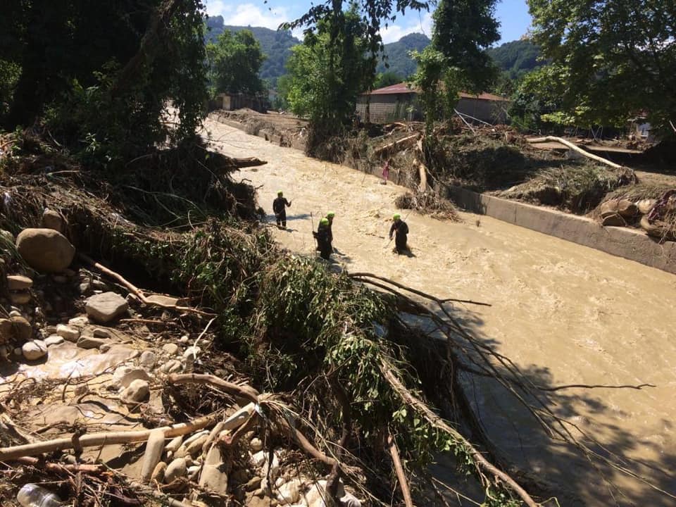 Ekipler, kaybolan 4’ü çocuk 6 kişiyi bulmak için dere yataklarıyla su taşkınlarının olduğu tarla ve fındık bahçelerinde arama çalışması yürütüyor.