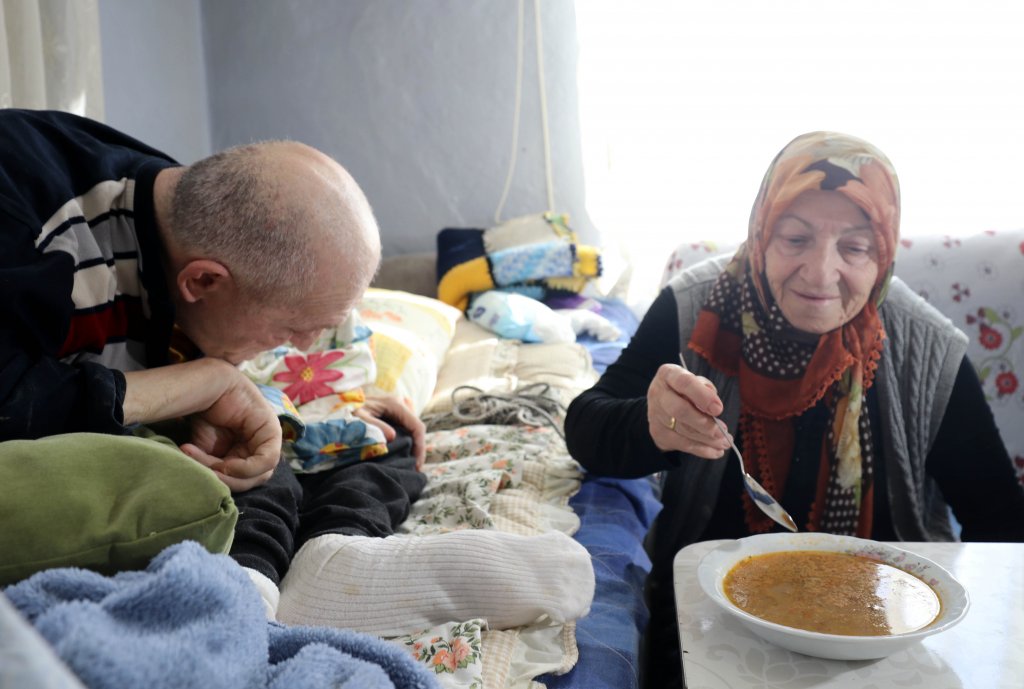 Düzce Belediye Sosyal Yardım İşleri Müdürlüğünce haftada bir gün evde bakım hizmeti alan çift, ömürleri yettikçe oğullarının bakımını sürdürmek istiyor.