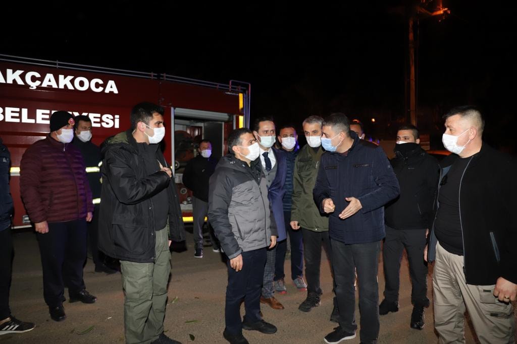 Düzce Valisi Cevdet Atay, yangında zarar gören alanı inceledi ve yetkililerden yangın hakkında bilgi aldı.