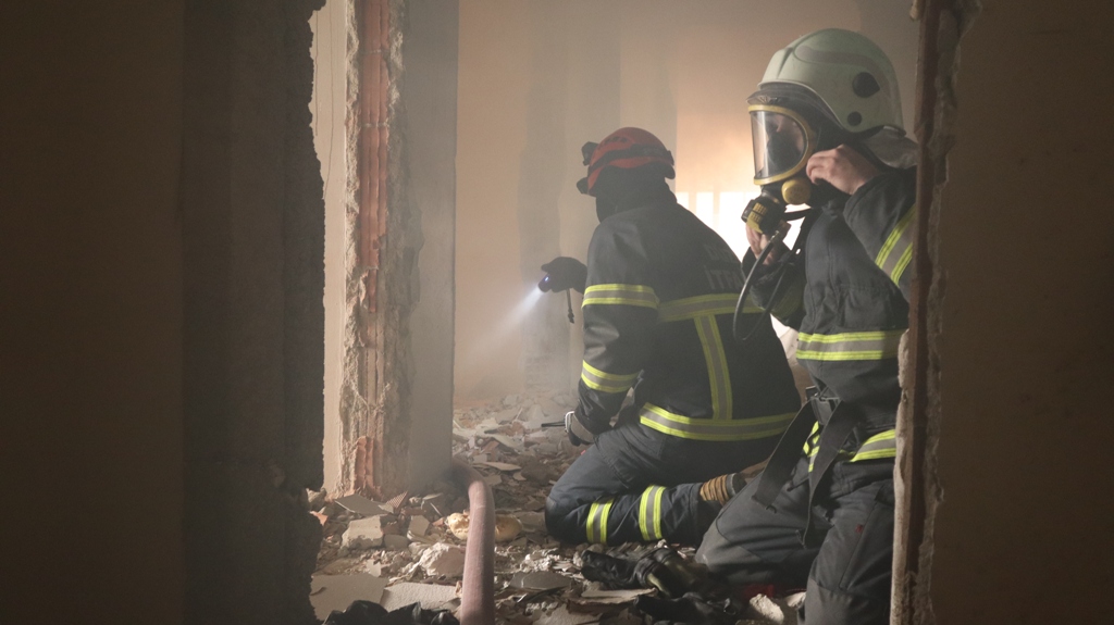 Havaya ve çevreye zarar vermeyen materyallerden çıkartılan yapay yangın için itfaiye ekiplerine ihbarda bulunuldu. İhbarı alan ekipler, iki dakika içerisinde 4 itfaiye aracı ve 9 personel ile olay yerine gelerek yangına müdahale etti. Ayrıca binada mahsur kalan ve yaralanan cansız mankenler de  kısa süre içinde tahliye edildi.