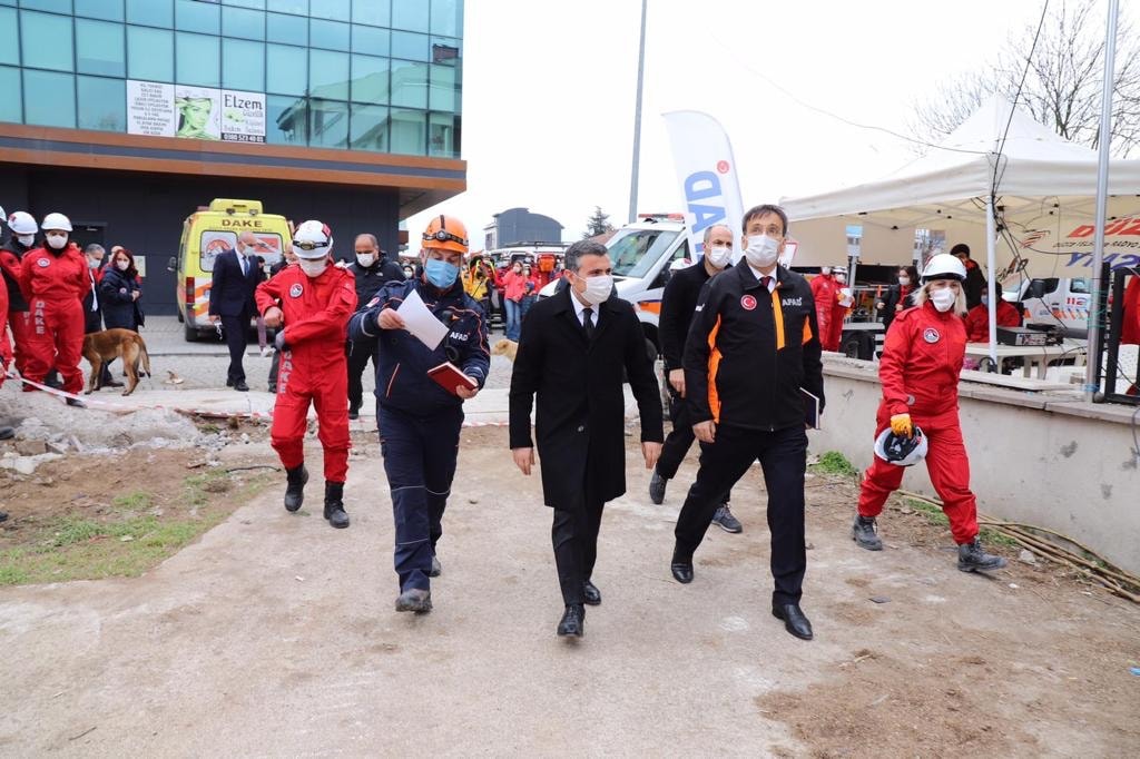 Düzce’de tatbikat gereği 6,2 büyüklüğünde meydana gelen deprem sonrasında binada mahsur kalanlar arama kurtarma ekipleri tarafından uzun süren uğraşlar sonrasında kurtarıldı. Vali Atay “Masa başı tatbikatı sonrası sahada kurtarma çalışmalarını takip ediyoruz. Bu sayede depreme ne kadar hazırız bunu göreceğiz” dedi.