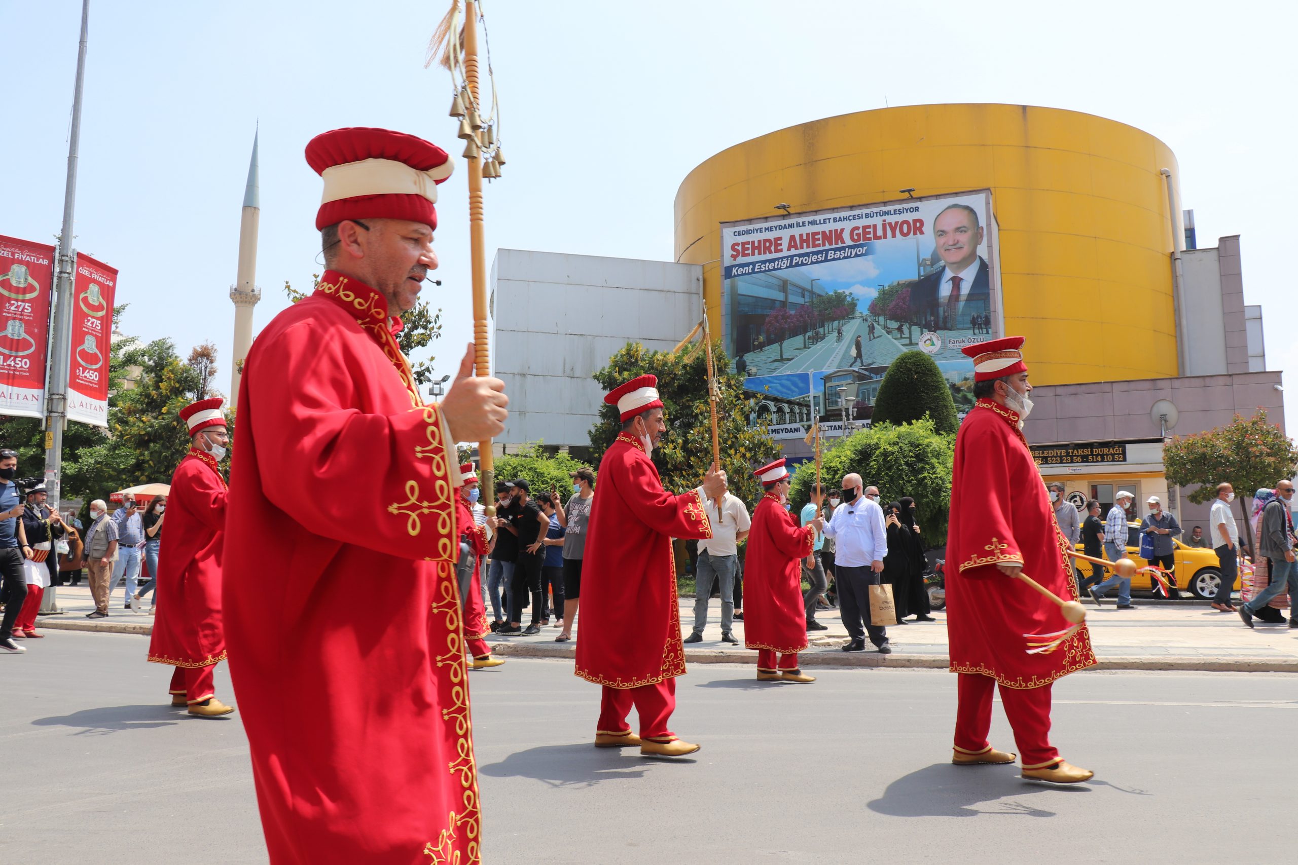 Düzce Belediyesi Mehteran Takımı, Cedidiye Meydanı’ndan çaldığı marşlar eşliğinde yürüyüşüne başladı. Çaldığı marşlar ile İstanbul Caddesi üzerinden geçen Mehter Takımı vatandaşlar tarafından alkışlar ile karşılandı. Vatandaşlar Mehter takımını heyecanlı ve meraklı gözler ile izlerken bir yandan da telefonları ile videolar çektiler.
