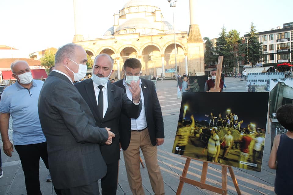 MÜSİAD Düzce Şube Başkanı Vefa Pehlivan, 15 Temmuz’da Türk milletinin tüm dünyaya bir kez daha demokrasi tutkusunu gösterdiğini belirterek, “15 Temmuz Türkiye’ye kara bir sayfa yazma amacında olan hain bir girişimi milletçe boşa çıkarttık. 15 Temmuz Türk Milletinin, özgürlüğü vatan sevgisini demokrasiyi ve ülke onurunu her şeyin üstünde tuttuğunun bir tezahürüdür. Demokrasi katili hainlere yaşlı, genç, kadın, erkek herkesin büyük bir öfke ile karşı durduğu o karanlık gecede Türk milleti tüm dünyaya bir kez daha demokrasi tutkusunu gösterdi. Birlik ve beraberlik dersi verdi. Bizler de MÜSİAD olarak darbe girişiminin hemen ardından tepkimizi ortaya koyduk ve bir çok STK henüz nabız yoklaması telaşındayken biz bu hain ayaklanmaya karşı duruşumuzu net biçimde ifade ettik demokrasi nöbetlerine katıldık. Yurt içi ve yurt dışında hainliği anlattık. Bugün açılışını yaptığımız fotoğraf sergisini, bu hain darbe girişimini geleceğe taşıyarak hiçbir zaman unutmayacağımız o kara geceyi belgeleriyle ortaya koyması bakamından son derece önemli buluyorum” dedi.
