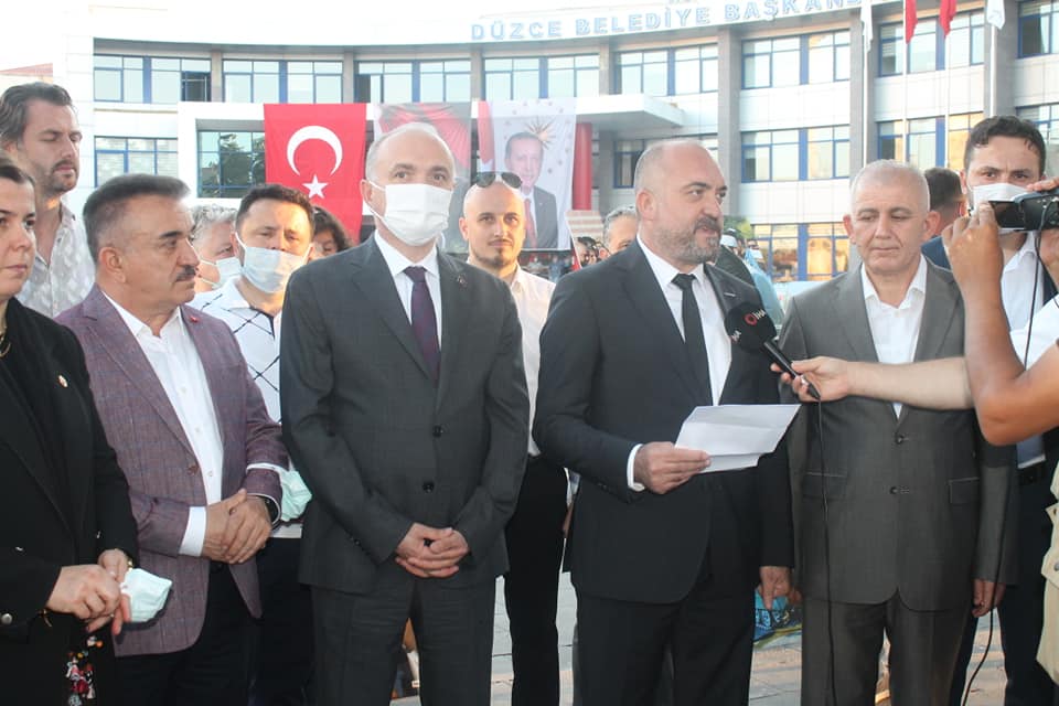 Sergiye katılan ve hain kalkışmanın yaşandığı tarihte Bilim Sanayi ve Teknoloji Bakanı olan Düzce Belediye Başkanı Dr. Faruk Özlü ise “Ben darbe girişimi sırasında bakanlar kurulu üyesiydim. Hükümete karşı yapılan bir darbe girişimiydi. Bende hükümetin üyesiydim. İçinde bulunduğum yüzyılda asla ve kat’a aklımıza gelme ihtimali olmayan bir olaydı. Aradan 5 yıl geçti. Geçen süre içinde bu hain girişimde bulunanların her gün cezalarının verildiğini görüyoruz. Hükümetimize de bu mücadelede başarılı çalışmaları için şükranlarımı sunuyorum” ifadelerinde bulundu.