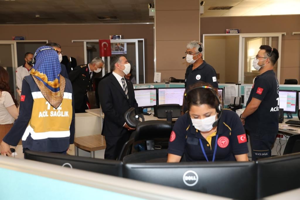 Sağlık çalışanlarına pandemi döneminde yaptıkları fedakar çalışma için ayrıca teşekkür eden Vali Atay, ardından 112 Acil Çağrı Merkezi’ni de ziyaret etti.