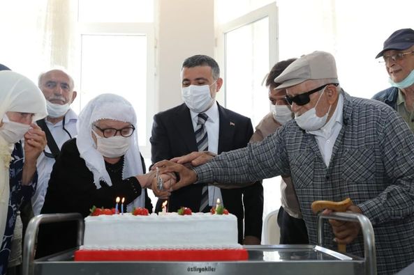 Bayram vesilesi ile hazırlatılan pastayı huzurevi sakinleri ile birlikte kesen Vali Atay, daha sonra huzurevinde kalanlarla tek tek bayramlaştı.