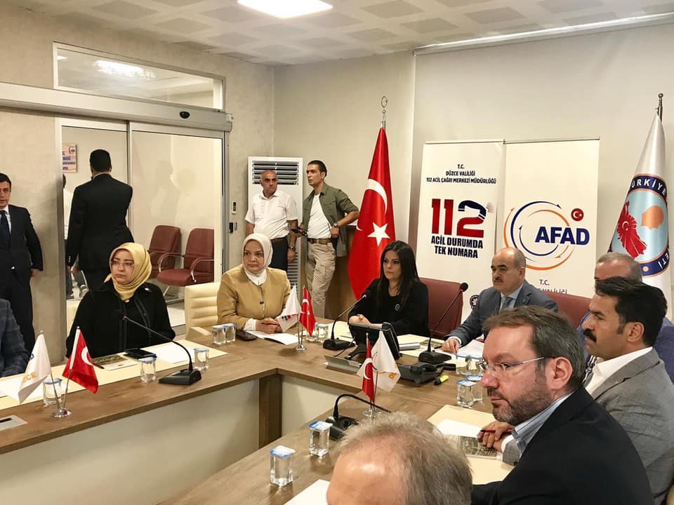 Düzce Valisi Zülkif Dağlı ile AK Parti Genel Başkan Yardımcısı Jülide Sarıeroğlu ve AK Parti milletvekillerinin de bulunduğu heyet, AFAD İl Müdürlüğü Güvenlik ve Acil Durumlar Koordinasyon Merkezi Toplantı Salonu’nda brifing aldı.