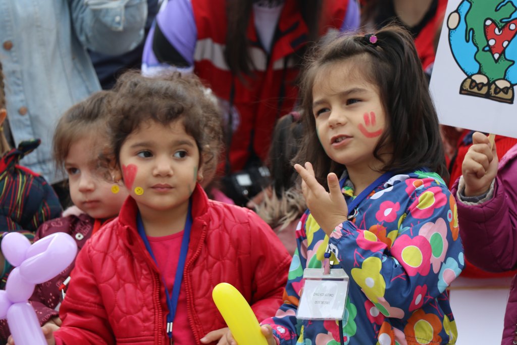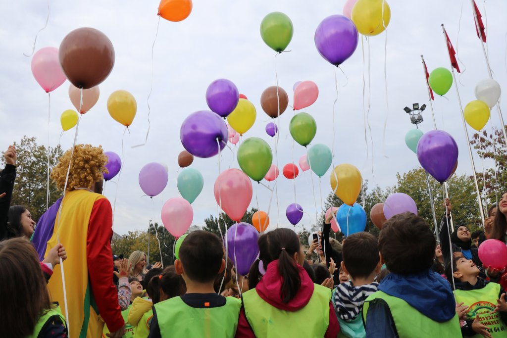 Anıtpark Meydanı’nda düzenlenen programda, yüz boyama etkinliğine katılan ve dans ederek eğlenen çocuklar, daha sonra balon uçurdu.
