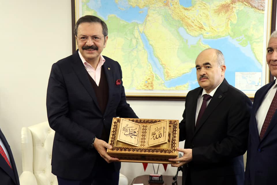 Hediyeleşmenin ardından Düzce Belediyesi’ne geçen Hisarcıklıoğlu, Belediye Başkanı Faruk Özlü ile görüştü.