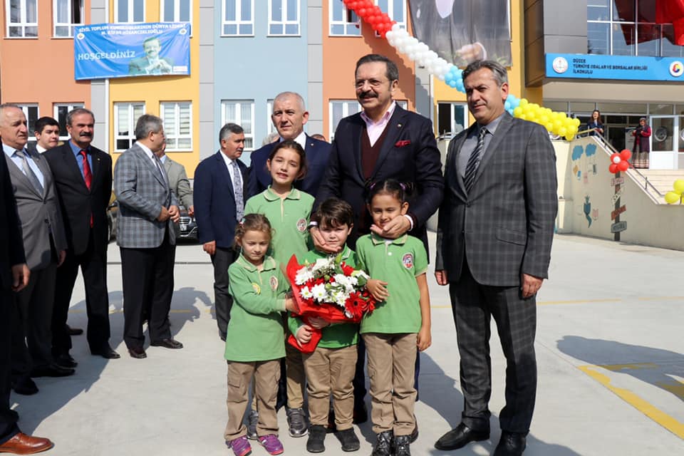 Ziyaret sonunda hatıra fotoğrafı çektiren Hisarcıklıoğlu, daha sonra TOBB İlkokulu’nda öğrencilerle bir araya geldi.