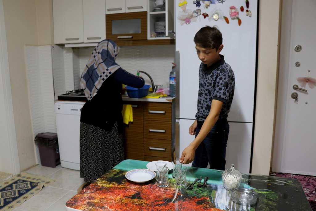 Sezgin-Meliha Aktaş çiftinin büyük oğlu 14 yaşındaki Bahadır Aktaş, okul ve derslerinden arta kalan zamanda babası ve annesine günlük yaşamlarında destek oluyor, 12 yaşındaki kardeşine de derslerinde yardımcı oluyor.