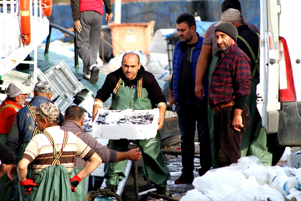 Bu arada Türkiye’nin farklı bölgelerine gönderilmek üzere hamsi yüklenen kamyonlar, liman girişinde ve sahil güzergahında uzun kuyruklar oluşturdu.