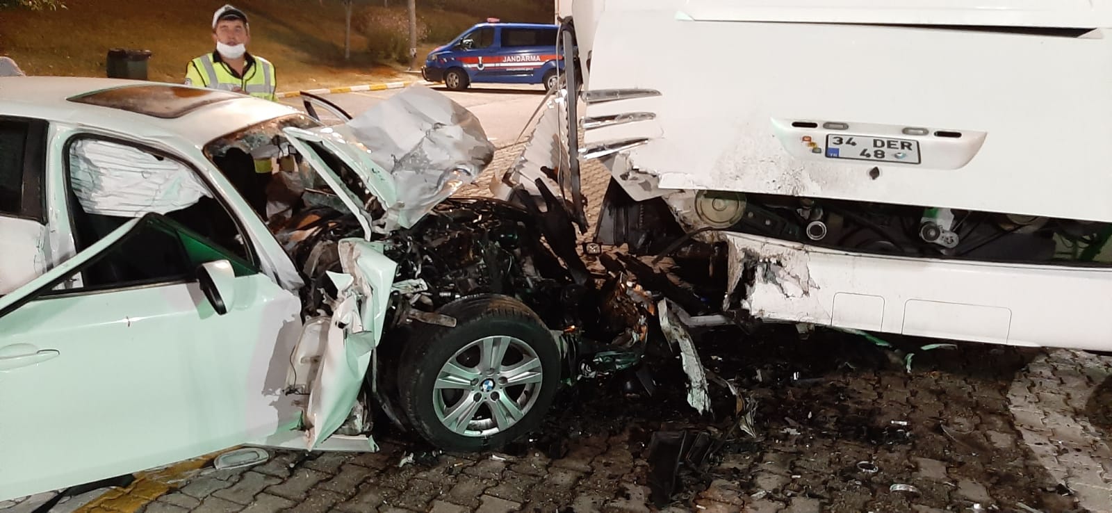Alınan bilgiye göre, mola vermek için Yeşilyayla mevkisindeki  dinlenme tesisine giren Yavuz Y. idaresindeki 34 SG 905 plakalı otomobil, park halindeki yolcu otobüsüne çarptı.