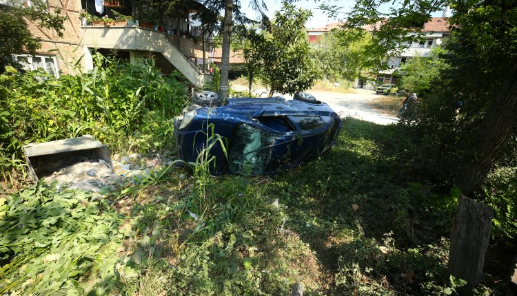 Daha sonra bir evin bahçesine devrilen otomobildeki iki kişi, olay yerinden kaçtı.