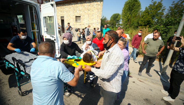 Çarpmanın etkisiyle yola savrulan baba Sedat Öztürk ve çocukları Emir Mustafa (5) ve Muhammet Öztürk (8) ağır yaralandı.