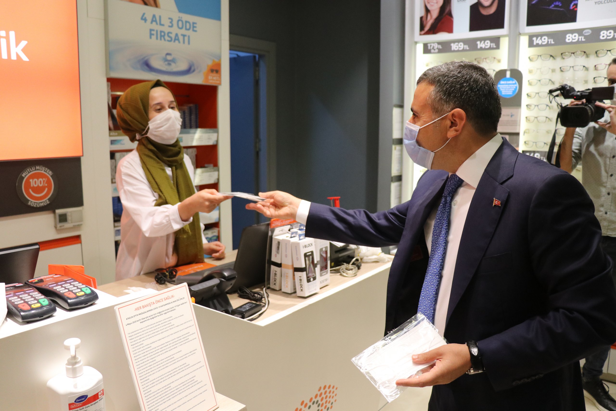 İstanbul Caddesi ve Kuyumcuzade Bulvarı üzerindeki alışveriş merkezi, iş yerleri, taksi durakları, parkları ve kafeteryaları inceleyen Atay, maske, mesafe ve hijyen denetimi yaptı. Mekanlarda çalışanlarla ve müşterilerle sohbet eden Atay, çocuklara da maske dağıttı.