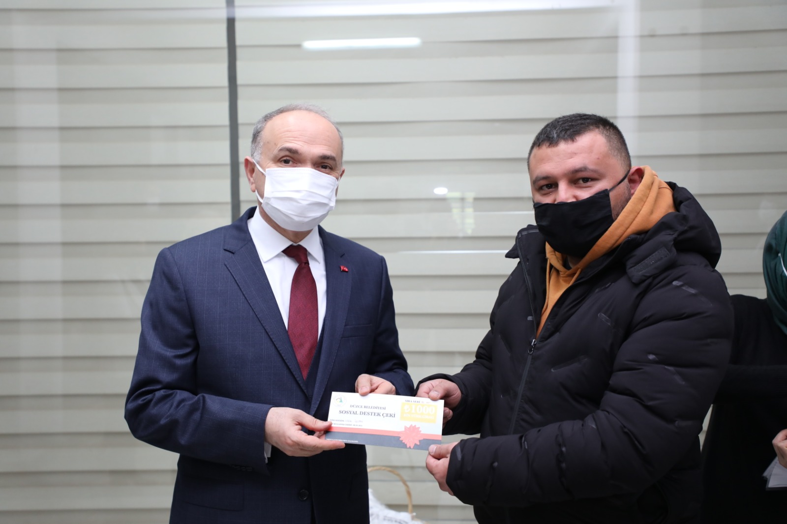 Düzce Belediyesi, pandemi nedeniyle faaliyetleri kısıtlanan 176 kahvehane ve internet cafe işletmecisi için hazırlanan alışveriş çeklerinin dağıtımına başladı. “Gün dayanışma günüdür” diyen Belediye Başkanı Dr. Faruk Özlü 1000 TL’lik çekleri esnafa teslim etti.