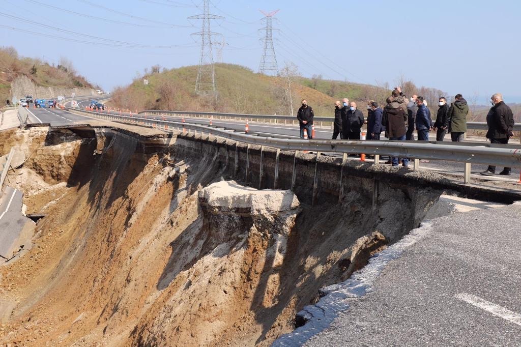 Düzce’yi Karadeniz’e bağlayan önemli geçiş güzergahlarından olan Düzce Zonguldak karayolunda aşırı yağışlar sonrasında duble yol gece saatlerinde tamamen çöktü. Heyelanın meydana geldiği alanda Düzce Valisi Cevdet Atay ve Karayolları yetkilileri alternatif yol güzergahı ile ilgili incelemeler yaptılar.