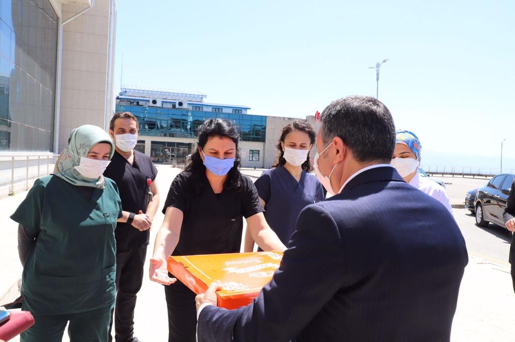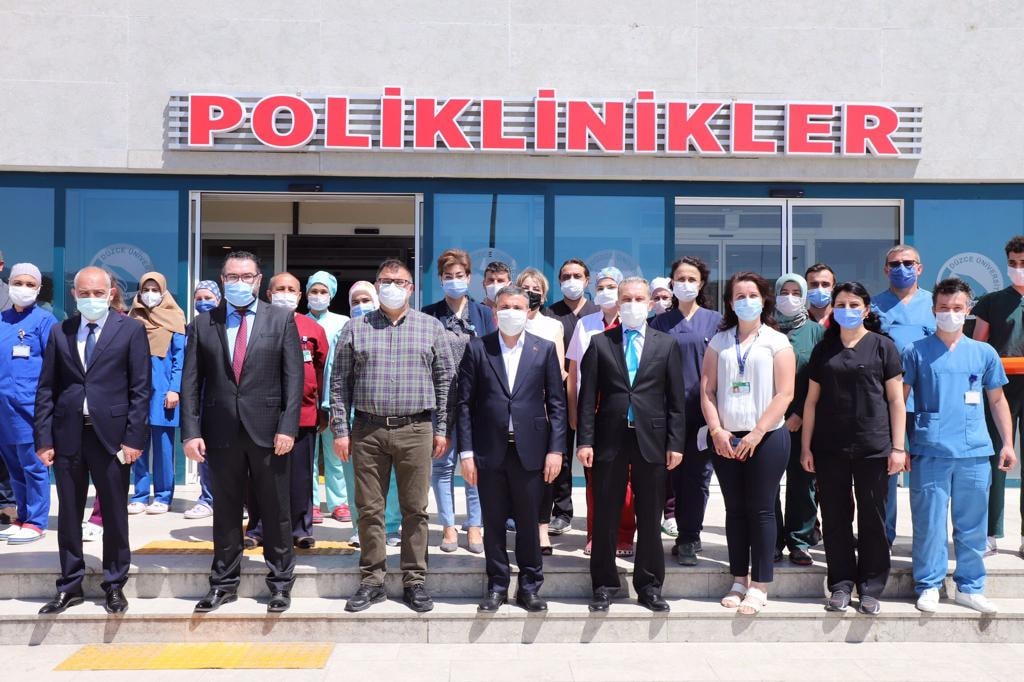 Vali Atay daha sonra Düzce Üniversitesi Araştırma ve Uygulama Hastanesini de ziyaret etti ve sağlık çalışanlarının bayramını kutladı.