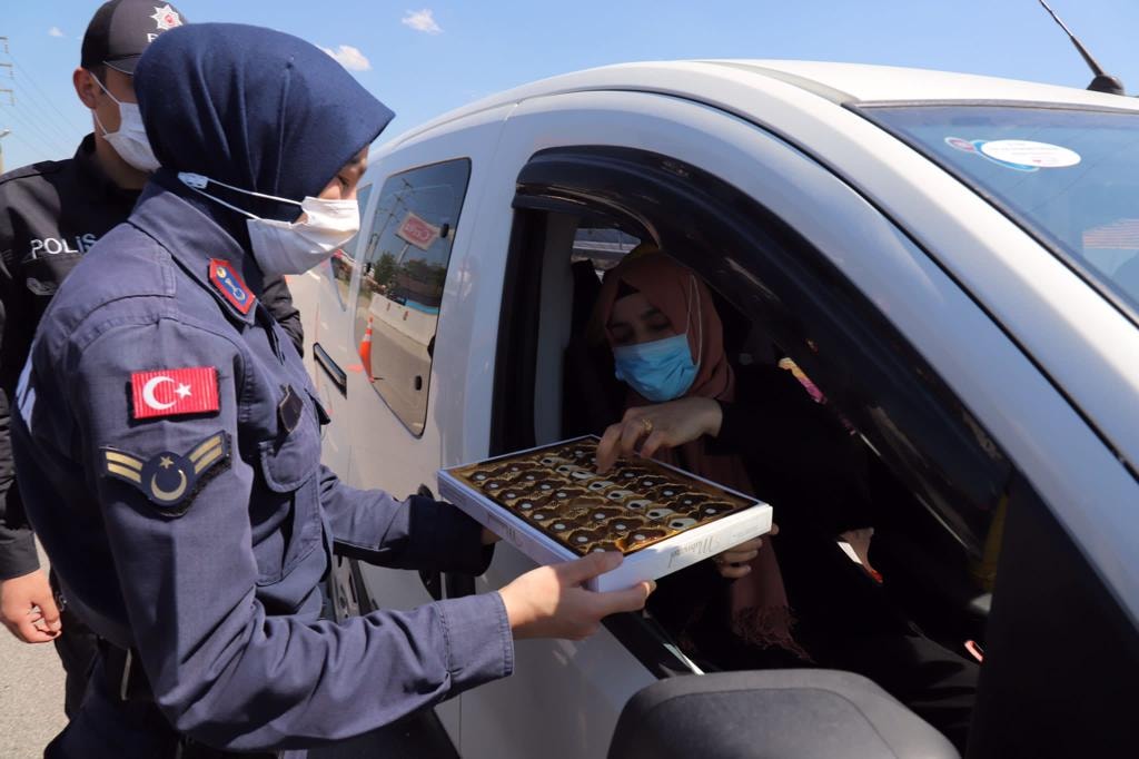 Korona virüs salgını kapsamında uygulamaya konulan tam kapanma nedeniyle Düzce’nin giriş ve çıkışların uygulama noktaları oluşturuldu. Bu uygulama noktalarında Ramazan Bayramı’nda da denetimlerini yapan kolluk kuvvetlerine Düzce Valisi Cevdet Atay ve beraberindeki heyet bayram ziyareti gerçekleştirdi.