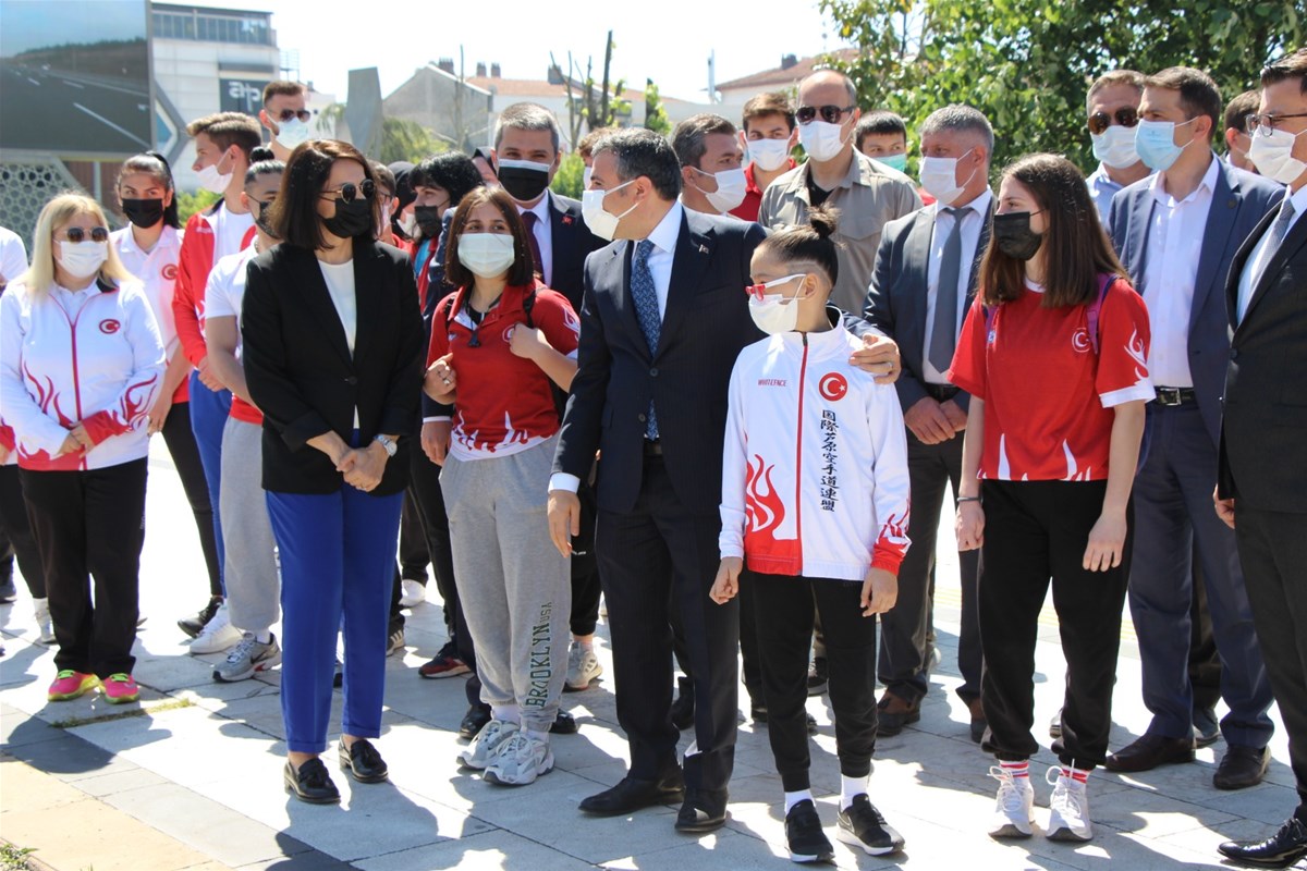 Daha sonra Düzce Valisi Cevdet Atay, tören alanına geldi ve kutlamalara katıldı. Milli sporcular Vali Atay’a çiçek takdim etti. Daha sonra Vali Atay ve milli sporcular Emniyet, Jandarma, 112 acil servis, İtfaiye ve çeşitli kamu kuruluşların katıldığı gençlik konvoyunu uğurladı.