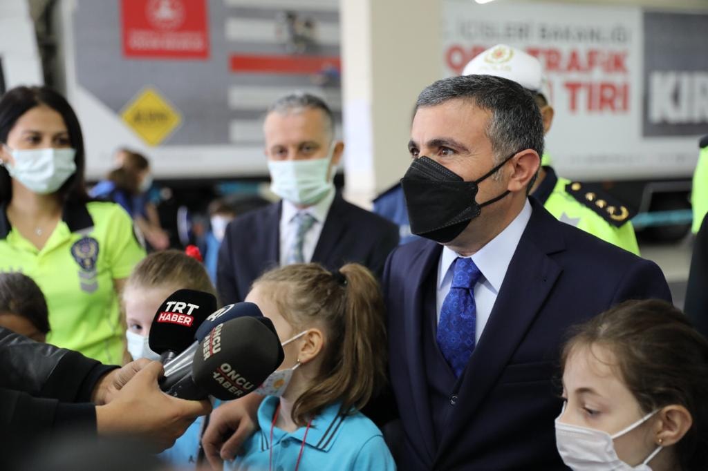 Çocuklara küçük yaştan itibaren trafik eğitimi verilmesi ile ilgili olarak Emniyet Müdürlüğü’nün güzel bir çalışma başlattığını belirten Düzce Valisi Cevdet Atay, “İçişleri Bakanlığımız tarafından trafik kurallarının çocuklar arasında yaygınlaşması ve farkındalık oluşturmak adına Mobil trafik eğitim tırımız burada çocuklarımızın hizmetinde. Bakanlığımızın göndermiş olduğu tırımızın içerisinde çocuklara eğitim veriliyor. Daha sonra dışarıda uygulamalı eğitim veriliyor. Çocuklarımız ne yapıyor? Trafik kurallarını öğrenmiş oluyor. Aynı zamanda öğrencileri bugün trafik dedektifi yaptık. Trafik kurallarına bundan sonra bu kardeşlerimiz çocuklarımız çok daha dikkat edecekler. Burada amacımız trafik kurallarının çocuk yaştan itibaren çocuklarımız tarafından bilinçli bir şekilde takip edilmesi önemsenmesi ve uygulanması gerekiyor. Emeği geçen tüm arkadaşlarıma teşekkür ediyorum” ifadelerinde bulundu.