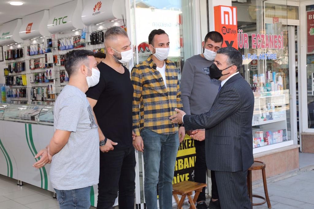 Esnafların sorun ve sıkıntılarını da dinleyen protokol üyeleri pandemi şartlarına uyan esnaflara teşekkür ederek bilgilendirmelerde bulundu.
