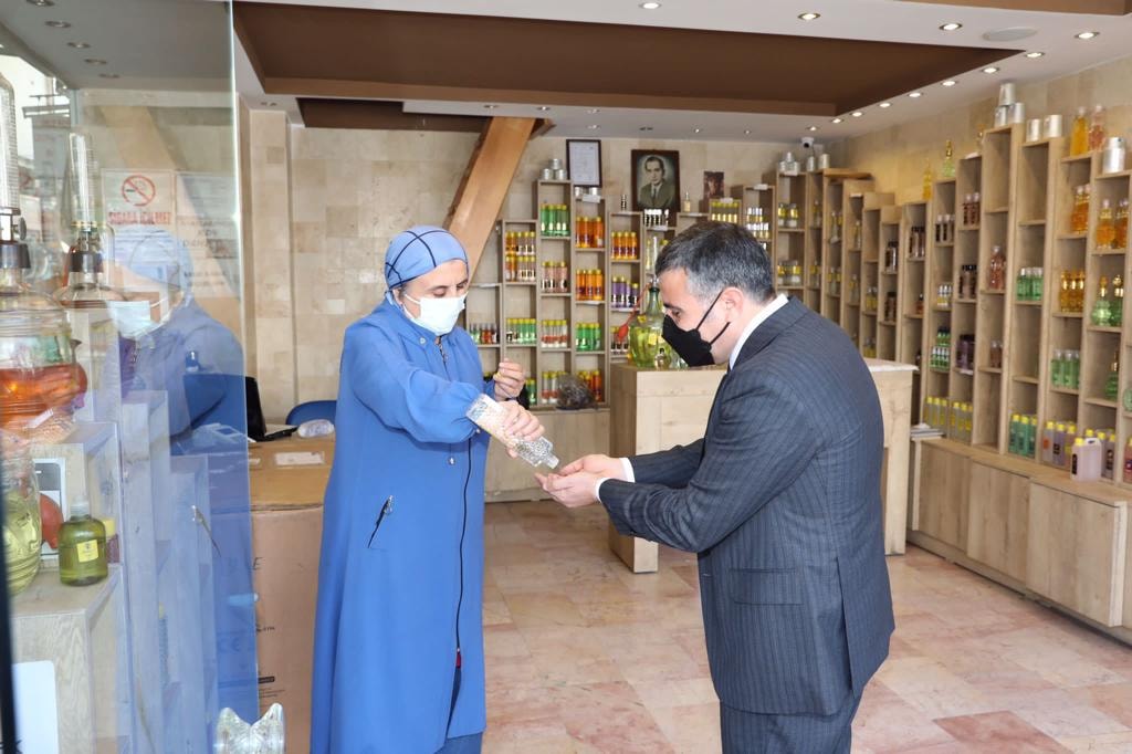 Korona virüs salgını sonrasında kontrollü normalleşme ile birlikte tamamen açılan esnaflar, pandemi kurallarına uyarak çalışmalarını sürdürüyor. Vali Cevdet Atay ve beraberindeki protokol üyeleri de İstanbul Caddesi ve Gaziantep Caddesi üzerinde bulunan esnafları tek tek ziyaret etti. Korona virüs salgını ile mücadele de esnafların almış olduğu kuralları tek tek denetleyen Vali Atay’a, Sağlık Müdürü Dr. Yasin Yılmaz, Jandarma Komutanı Alb. Naci Akkaş, Emniyet Müdürü Mehmet Ali Akkaplan’da eşlik etti.