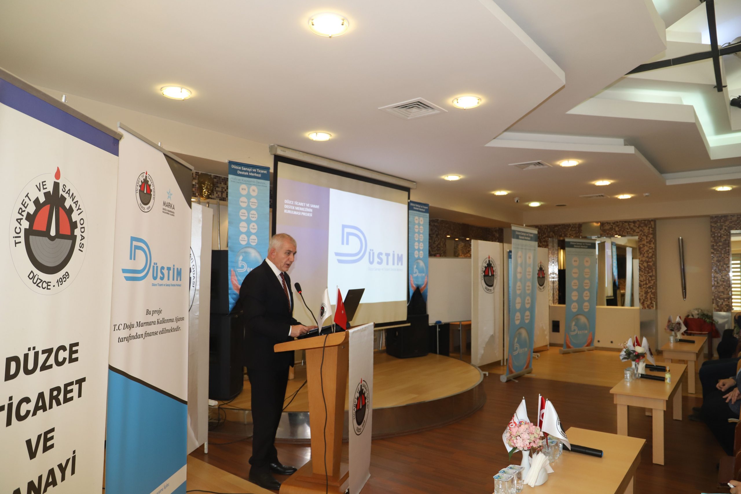 Düzce Sanayi ve Ticari Destek Merkezi (DÜSTİM) kapanış toplantısı gerçekleştirildi. Geniş katılımla yapılan toplantıda açılış konuşmasını Düzce Ticaret ve Sanayi Odası Yönetim Kurulu Başkanı Tuncay Şahin yaptı.