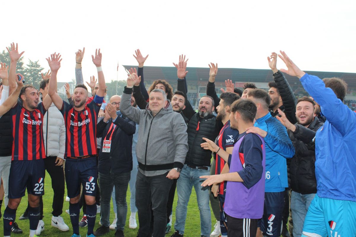 10 kişi kaldığı ve 2-1 geriye düştüğü maçı kendi saha ve seyircisi önünde 3-2 önde tamamlayan Düzcespor, 19 puanla ligin zirvesine yerleşti.