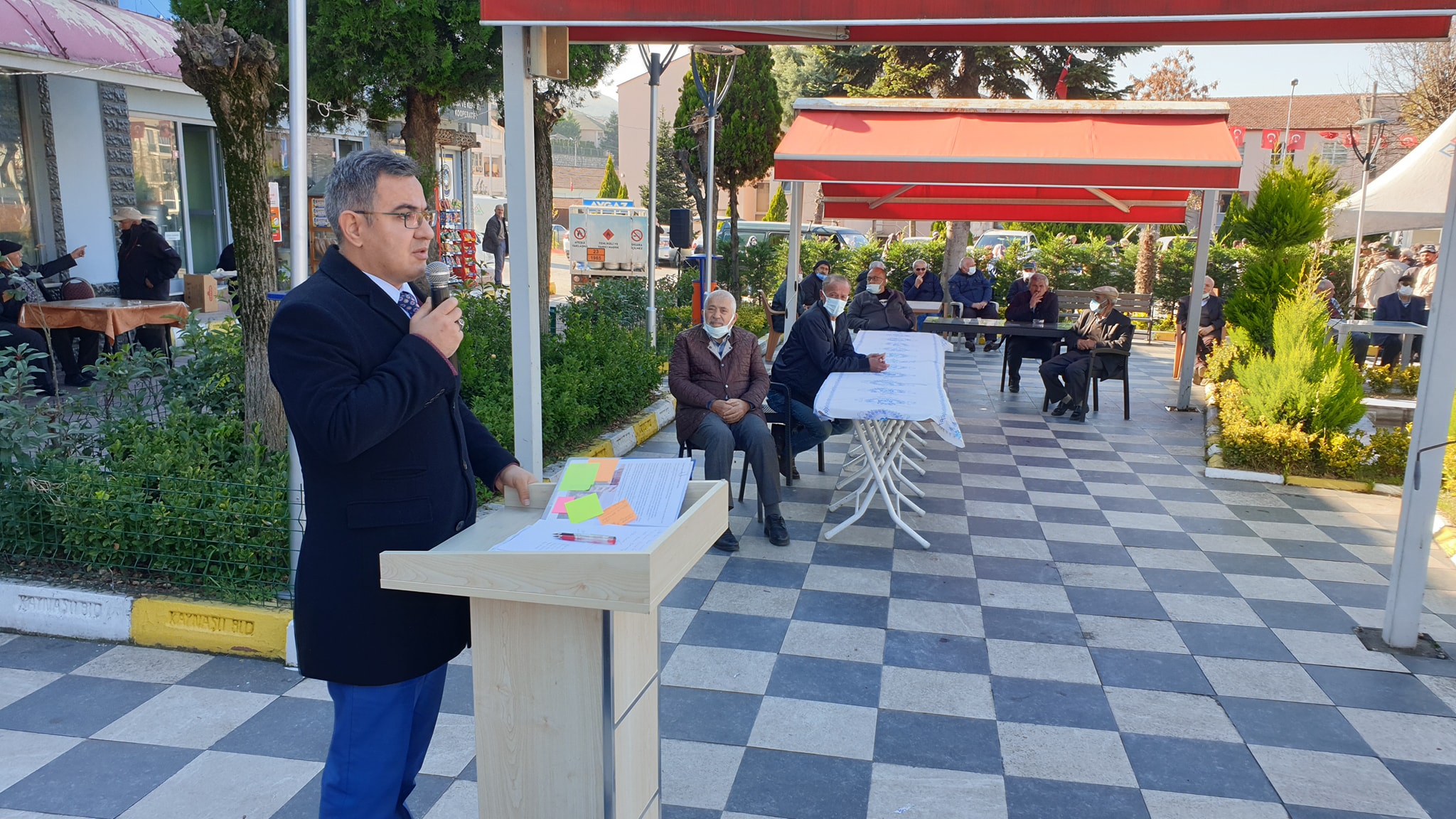 Konuşmaların ardından depremde yaşamını yitirenler için Mevlid okutuldu, dualar edildi, helva ikram edildi.