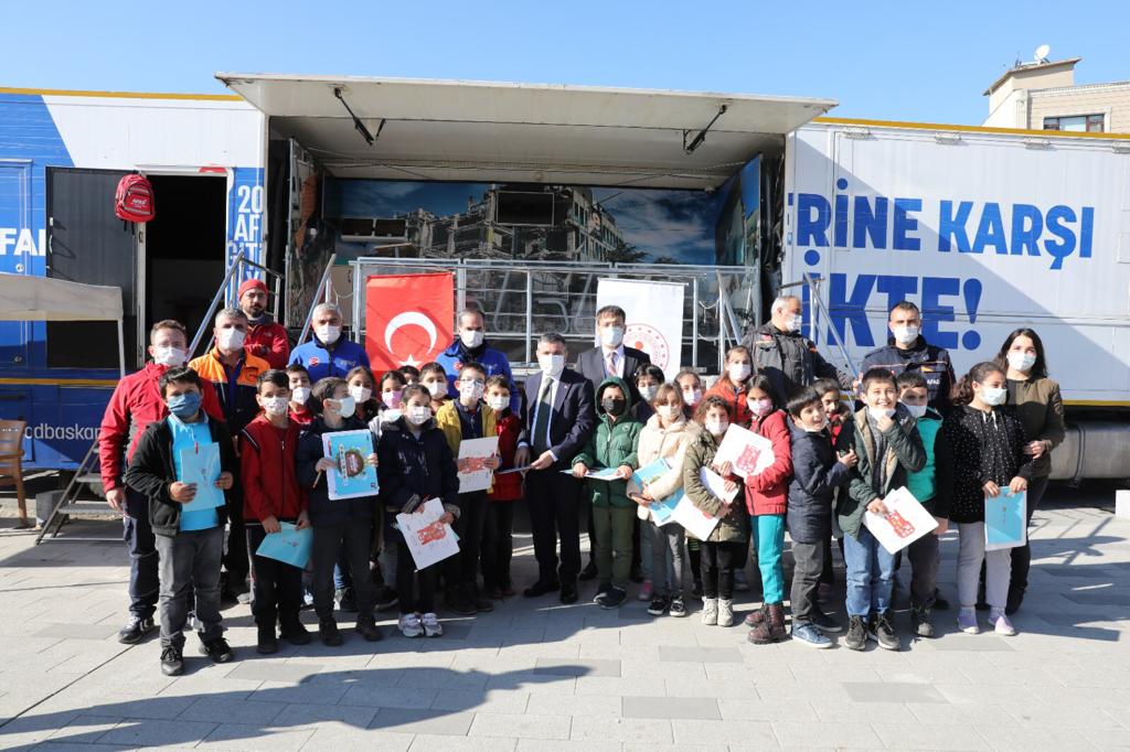 Anıt Park Meydanı’nda vatandaşların ziyaretine açılan tıra İl Milli Eğitim Müdürlüğü’nün organizasyonuyla gelen öğrenciler de deprem simülasyonu ile deprem anını birebir yaşadı. Düzce Valisi Cevdet Atay Gezici Deprem Simülasyon Tırını ziyaret ederek öğrencilere eşlik etti.  AFAD görevlileri tarafından öğrencilere deprem anında yapılması gerekenler konusunda bilgiler verildi.