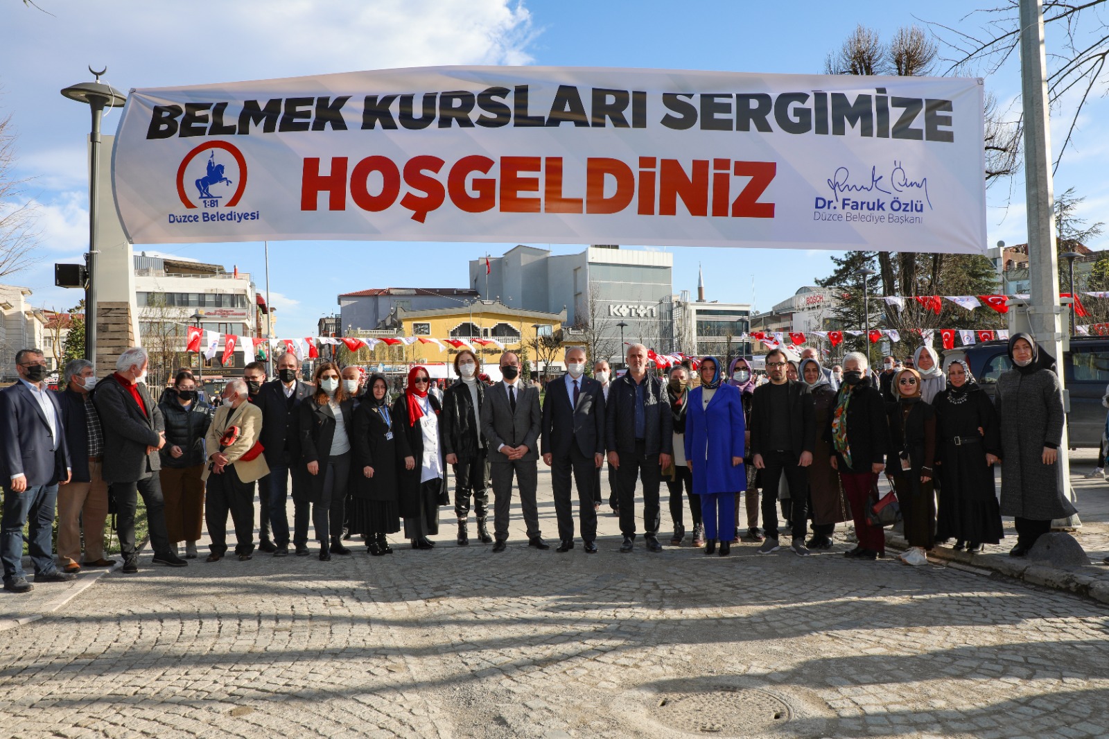 Düzce Belediyesi Kültür İşleri Müdürlüğü bünyesinde faaliyet gösteren Belmek (Düzce Belediyesi Meslek Edindirme Kursları) kursiyerlerinin yapmış olduğu eserler, Düzce Millet Bahçesinde “ Elimizde Sanat Var” sloganı ile sergilendi. Sergi açılışına Düzce Belediye Başkanı Dr. Faruk Özlü de katılarak tüm eserleri inceledi.