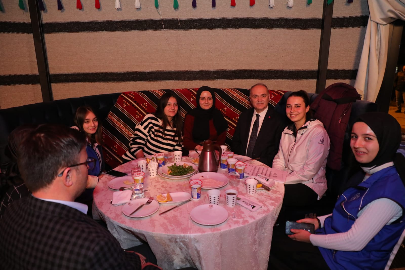 Çiğ köfte ikramının ardından tüm masaları gezerek gençler ile sohbet eden başkan Özlü öğrencilerle bol bol hatıra fotoğrafı çektirmeyi ihmal etmedi.