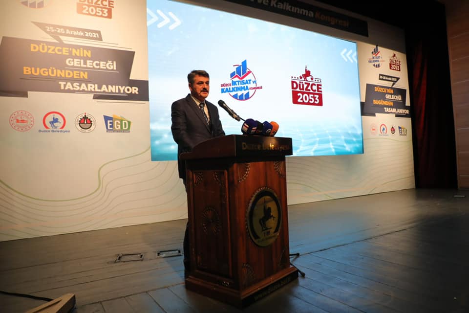 organizasyon gerçekleştirilmesinde en büyük emeği sarfeden Belediye Başkanı Dr. Faruk Özlü başta olmak üzere EGD Başkanı Celal Toprak’a teşekkür etti. Şahin, “Bu ve bundan sonraki kongrelerde amacımız Düzce’nin iktisadi kalkınmasını sağlamak ve yol haritasını oluşturmak olmalıdır. Bu yol haritasını da bizden sonrakilere bir referans kaynağı olarak kalmasını sağlamak olacak” dedi.