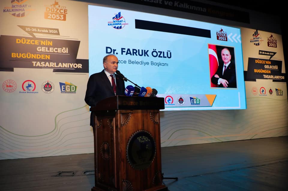 İstiklal Marşının okunmasının ardından kongrenin açılış konuşmasını gerçekleştiren Düzce Belediye Başkanı Dr. Faruk Özlü, tüm konuklara hoş geldiniz derken, iki gün boyunca konuşulacak her konunun Düzce için son derece önemli olduğunun altını çizdi. Başkan Özlü, Düzce’ye yaptığı konuşmasının devamında, “Bölgesel Kalkınmanın Merkezi Düzce” sloganıyla düzenlediğimiz kongrede; tarımdan ticarete, sanayiden turizme, lojistikten bilgi teknolojilerine kadar birçok konuda Düzce’yi konuşacağız. Düzce, 3 Aralık 1999’da il oldu. Geçen 22 yıllık sürede, bir yandan depremin yaralarını sarmaya çalışırken, diğer yandan Düzce’yi her alanda ileriye taşımak için yoğun gayret gösterdik. Geriye dönüp baktığımda; gayretlerimizin boşa gitmediğini, Düzce’nin birçok alanda ilerlediğini görmekten büyük bir mutluluk duyuyorum” dedi.