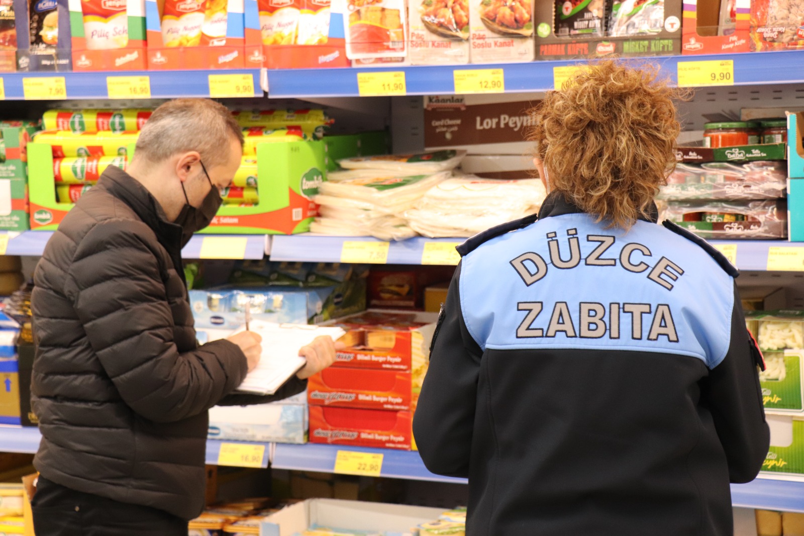 Düzce Belediyesi Zabıta Müdürlüğü ekipleri, Ticaret İl Müdürlüğü ekipleri ile birlikte ‘6502 sayılı Tüketicinin Korunması Hakkında Kanun ve Uygulama Yönetmelikleri’ gereğince il genelindeki marketlerde raflardaki fiyat etiketlerini inceleyerek fahiş fiyat, gramaj eksikliği, etiket denetimleri gerçekleştiriyor.