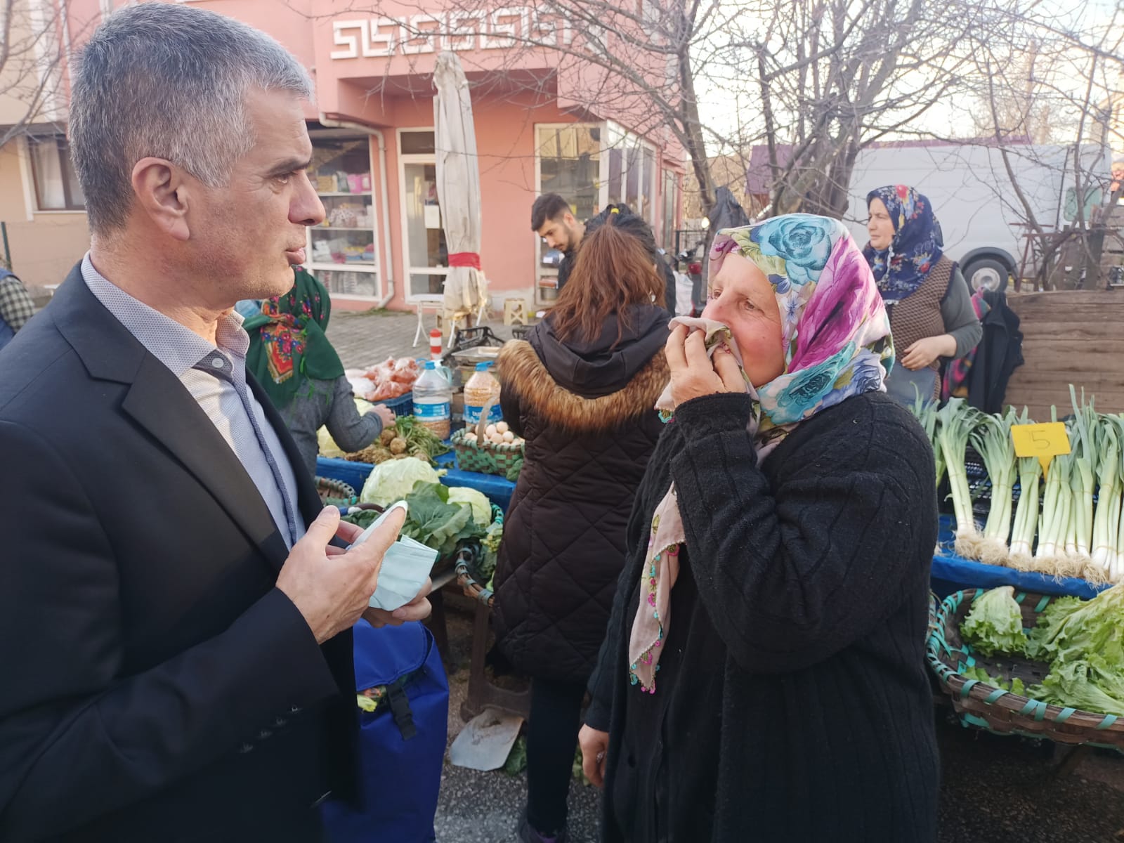CHP İl başkanı Semih Cemşit’i karşılarında gören pazarcı esnafı “İnsanlarda alım gücü yok. Gelip bakıyor fiyatı söylediğin zaman çekip gidiyor. Biz bazen kendimiz ürünler getiriyor satıyoruz satmasına ama nasıl satıyoruz. Getirdiğim fiyatın aynısına satıyoruz. Sıfıra sıfır hiçbir şey kalmıyor. Yıllardır bir kapalı pazaryerimiz yok. Karda kışta çile çekiyoruz. ’diyerek isyan ederken bir diğer yandan, Hacı Ahmetler,Darıcı ve Duraklar köyünde üretim yapan bir grup pazarcı esnafı ise bölgelerinde faaliyet gösteren Organize Sanayi Bölgesinin