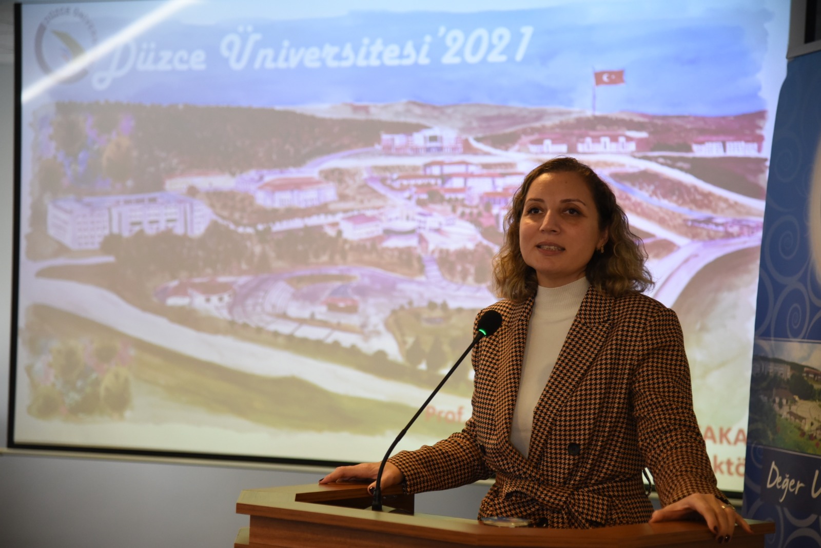 Toplantıda, Düzce Üniversitesi Rektörü Prof. Dr. Nigar Demircan Çakar, Üniversitenin eğitim ve öğretim faaliyetleri ile bölgesel kalkınma çalışmalarını içeren bir sunum yaptı. Düzce sevdalılarıyla bir arada bulunmaktan dolayı duyduğu memnuniyetini dile getiren Rektör Çakar, Düzce’ye kattıkları değeler için herkese teşekkür etti.