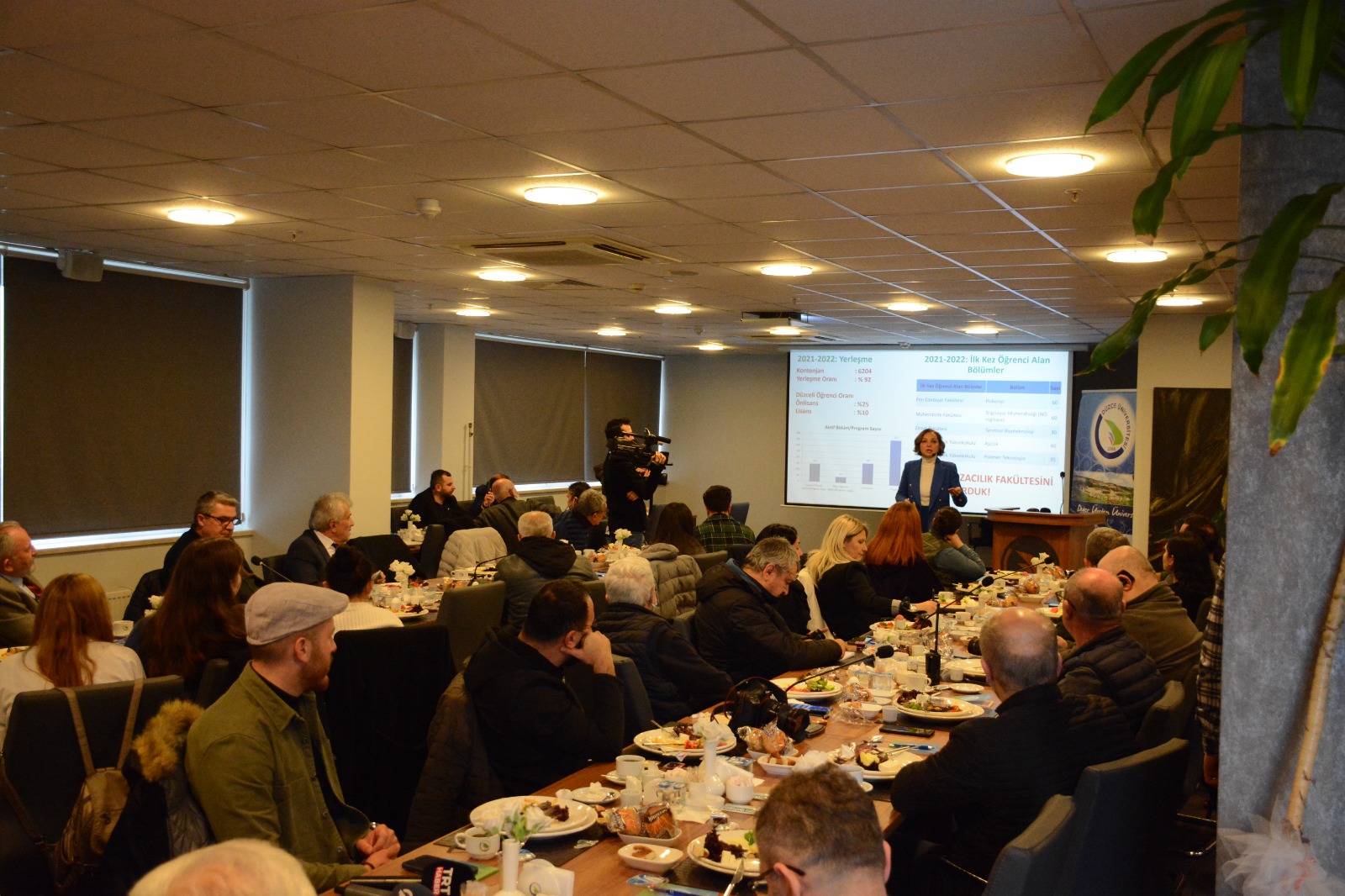 Rektörlük Çalıştay Salonu’nda düzenlenen programa; Düzce Üniversitesi Rektörü Prof. Dr. Nigar Demircan Çakar, Rektör Yardımcıları Prof. Dr. İlhan Genç, Prof. Dr. İdris Şahin, Prof. Dr. Mehmet Akif Öncü, Genel Sekreter Hasan Sadi Ateş, Düzce Üniversitesi Hastanesi Başhekimi Prof. Dr. Öner Abidin Balbay, Düzce Üniversitesi İletişim ve Tanıtım Koordinatörü Öğr. Gör. Duygu Özdemir Cömert ile Düzce’de faaliyet gösteren basın kuruluşlarının temsilcileri katıldı.