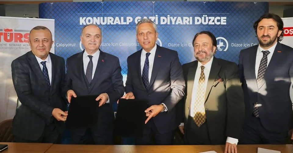 Düzce Belediye Başkanı  Faruk Özlü, Doğa Koruma ve Milli Parklar Genel Müdürlüğü 9. Bölge Müdürü Musa Kaya, Yönetim Kurulu Başkanı Firuz B. Bağlıkaya, Turizm ve Seyahat Acentaları Vakfı (TURSAV) Başkan Vekili Yusuf Yazıcı’nın katılımları ile Düzce’de düzenlenen imza töreninde, Tarım ve Orman Bakanlığı tarafından Düzce Belediyesi’ne bağlı Beltaş’a kiralanan Düzce Korugöl Tabiat Parkı’ndaki arazinin kullanım hakkına Tarım ve Orman Bakanlığı’nın izni ile TURSAV da ortak oldu.