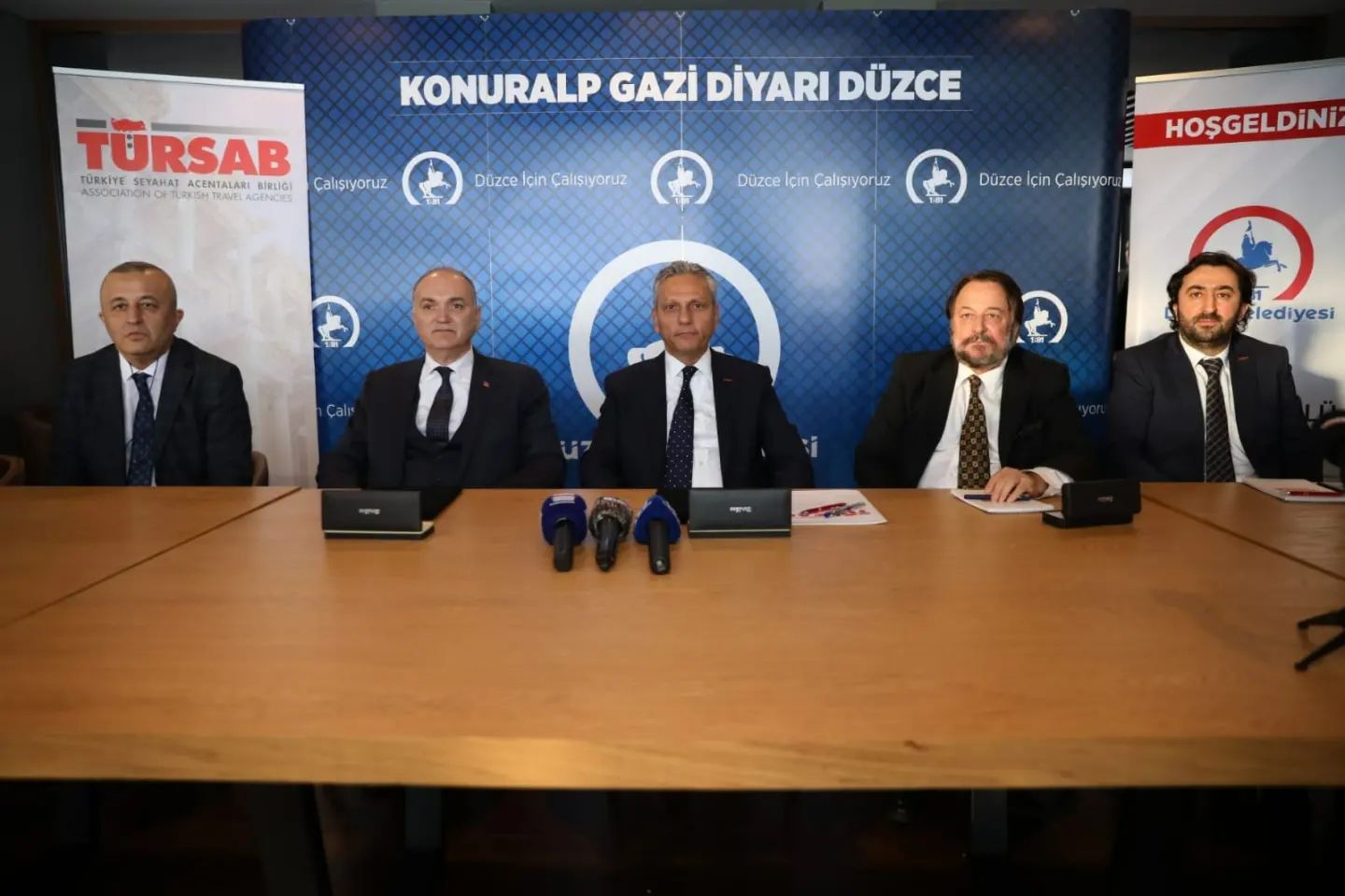 Türkiye Seyahat Acentaları Birliği (TÜRSAB) Başkanı Firuz B. Bağlıkaya, pandemi döneminde turizmin doğaya dönük bir özelliğe büründüğünü kaydederek, “Düzce ellenmemiş doğasıyla da yeni turizm trendlerinin her türlüsüne cevap verebilecek nitelikte bir bölge.” dedi.  Başkan  Faruk Özlü ise, “Gerçekten burada turizm adına yapılacak olan her çalışma çok değerli. O bakımdan bizim Düzce Belediyesi olarak bu bölgede yapılacak her çalışmaya katkı sunmak gibi bir görevimiz var.” diye konuştu.