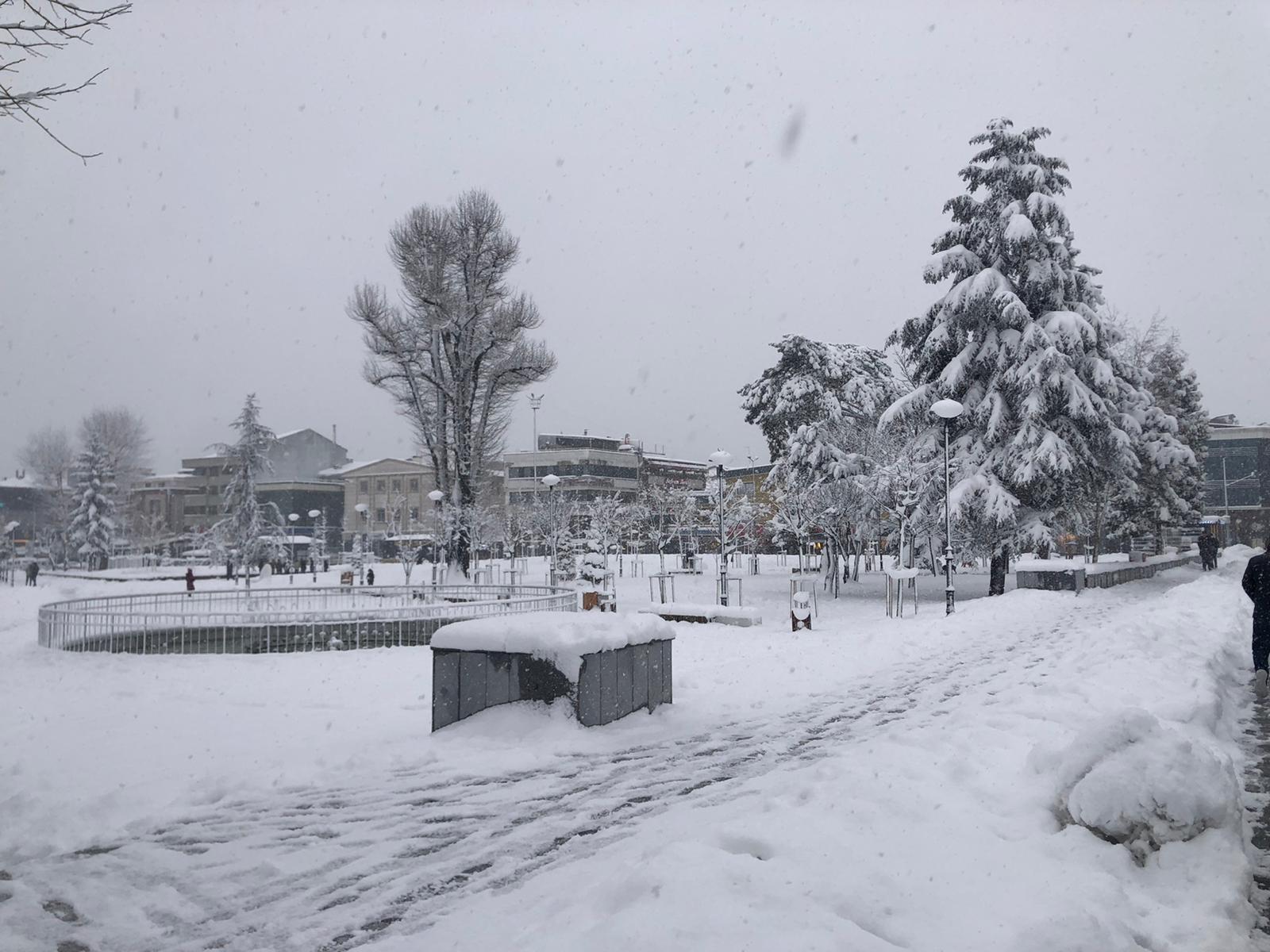 Şehir merkezinde cadde ve sokaklarda kar yağışı ile birlikte kartpostallık görüntüler oluştu.