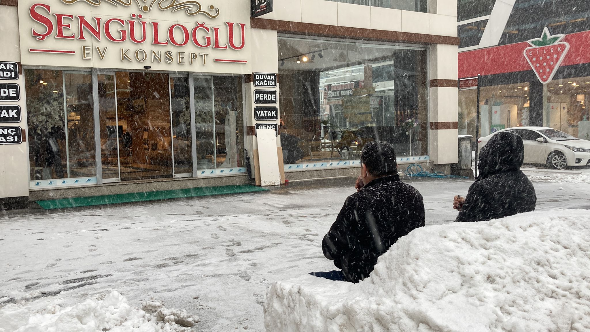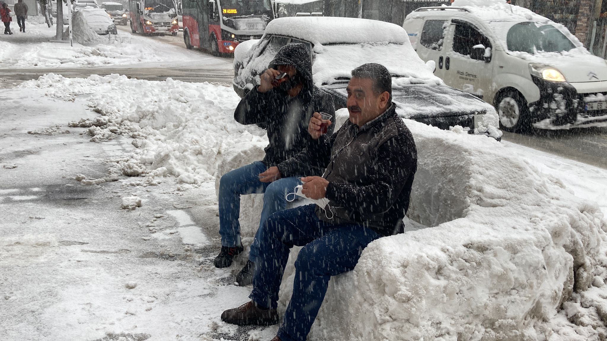 Mağaza çalışanları daha sonra da koltuğa oturup çay içerek karın tadını çıkardılar. Kaldırımda yürüyen vatandaşlar da kardan koltuğa oturup çay içenlere ilgiyle baktılar ve bol bol fotoğraf çekerek anı ölümsüzleştirdiler.