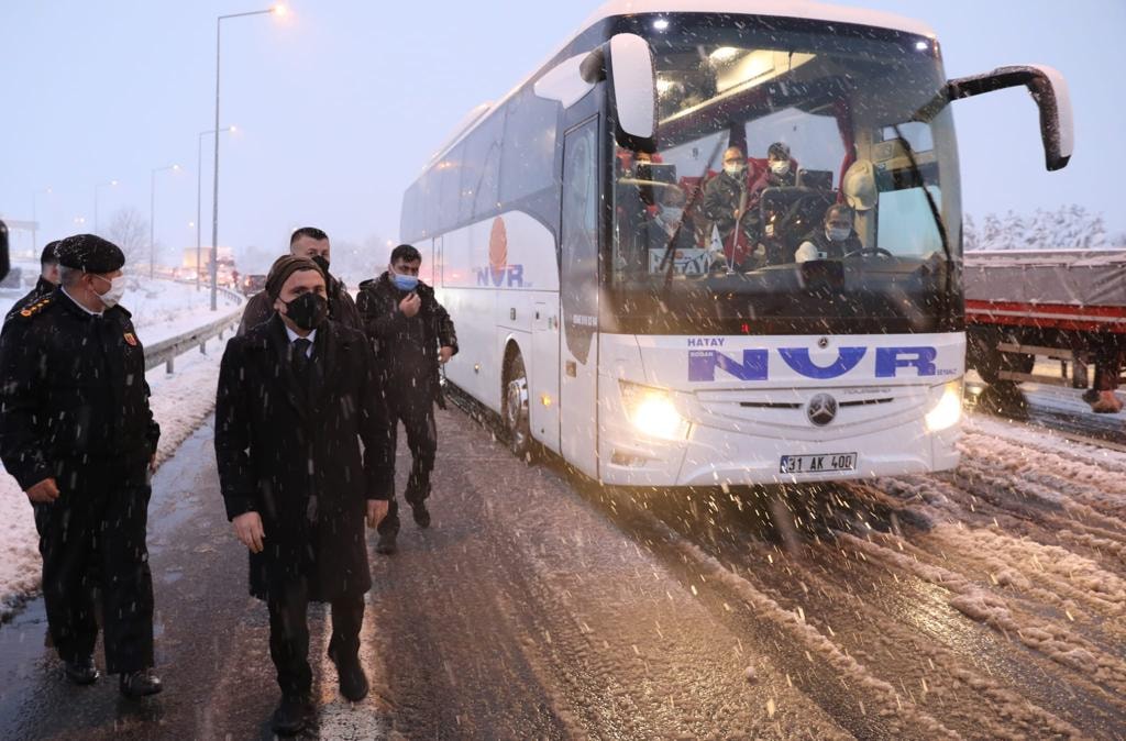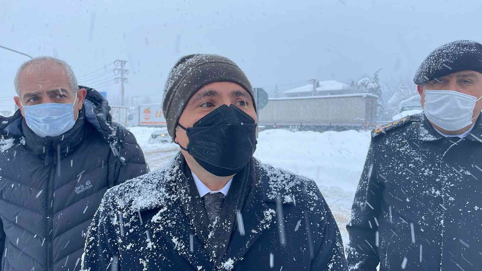 Burada şoförlerle görüşerek yolun kısa sürede açılacağını belirten Vali Atay, “Dün geceden beri yağan kar yağışı neticesinde ilimizde Ankara ve İstanbul güzergahımız hem tem hem eski yol iki tarafta da yer yer aksamalar söz konusu. Bolu tarafında hem de bizim tüneller tarafında özellikle büyük araçların yolda kayması sonucu yolların kapanmasına sebep oluyor. Bundan dolayı ben buradan tüm kamyonculara sesleniyorum. Mümkün olduğunca yolun açılmasını bekleyin. İlgili arkadaşların talimatları doğrultusunda onların yönlendirmesi ile lütfen yola çıkalım ve bizim trafikçi arkadaşlarımızın kurallarına mutlaka uyalım. Karla mücadele çalışmamız geceden beri yoğun bir şekilde devam ediyor. Kara yolları bölge müdürlerimiz hem İstanbul hem Ankara burada emniyet ve jandarma onlara bağlı tüm birimdeki arkadaşlarımız ciddi anlamda çalışıyorlar sırf vatandaşlarımız mağdur olmasın diye. Elimizden gayreti hep beraber gösteriyoruz” ifadelerini kullandı.