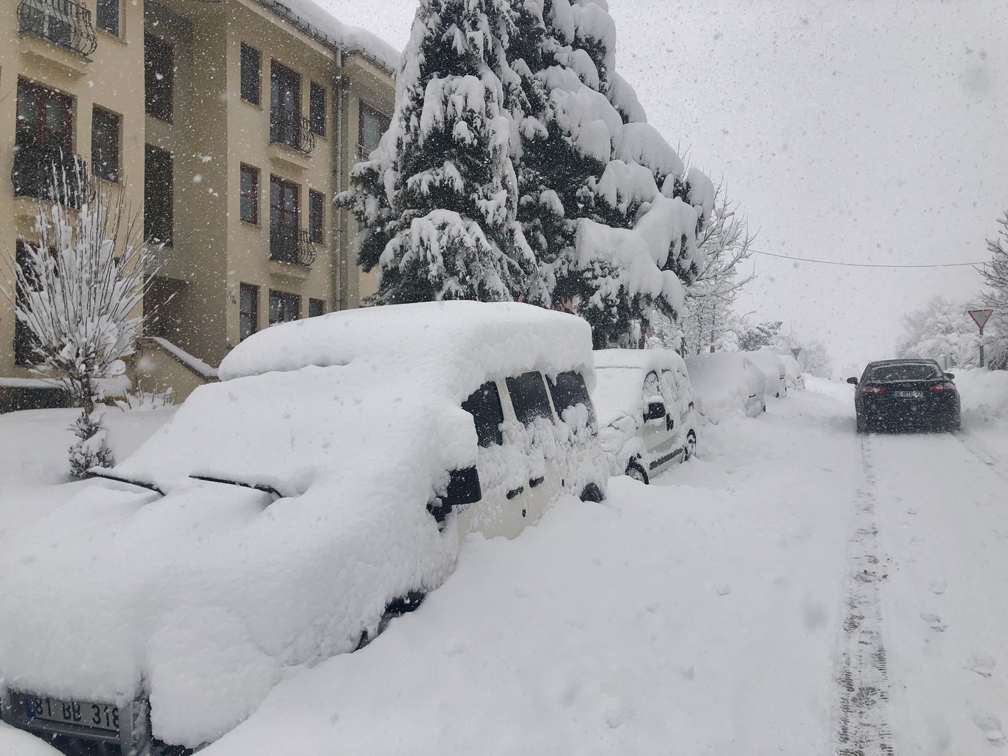 Tipi şeklinde yağan kar yağışı nedeniyle park halinde duran araçlar karla kaplanırken vatandaşlar ise ulaşım için a toplu taşıma araçları kullanmak zorunda kaldı.