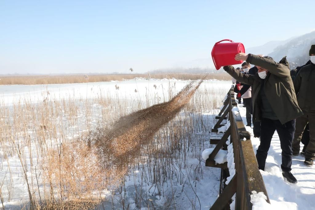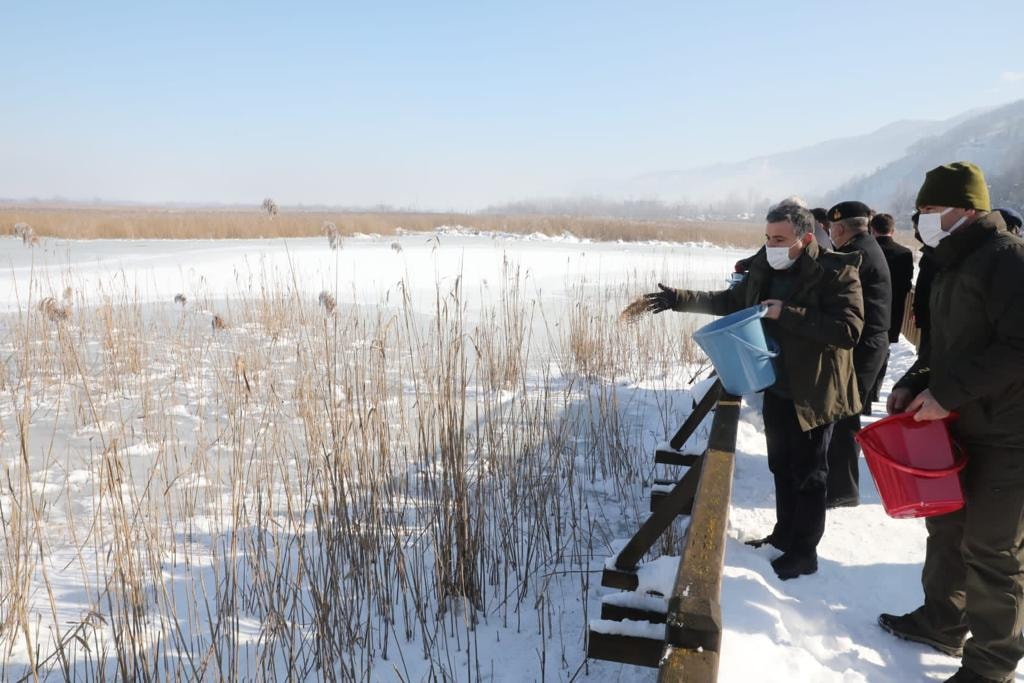 Düzce Valisi Cevdet Atay, soğuk havalarda yem bulmakta zorluk yaşayan yaban hayata beraberinde ki heyet ile birlikte yemleme çalışması gerçekleştirdi.