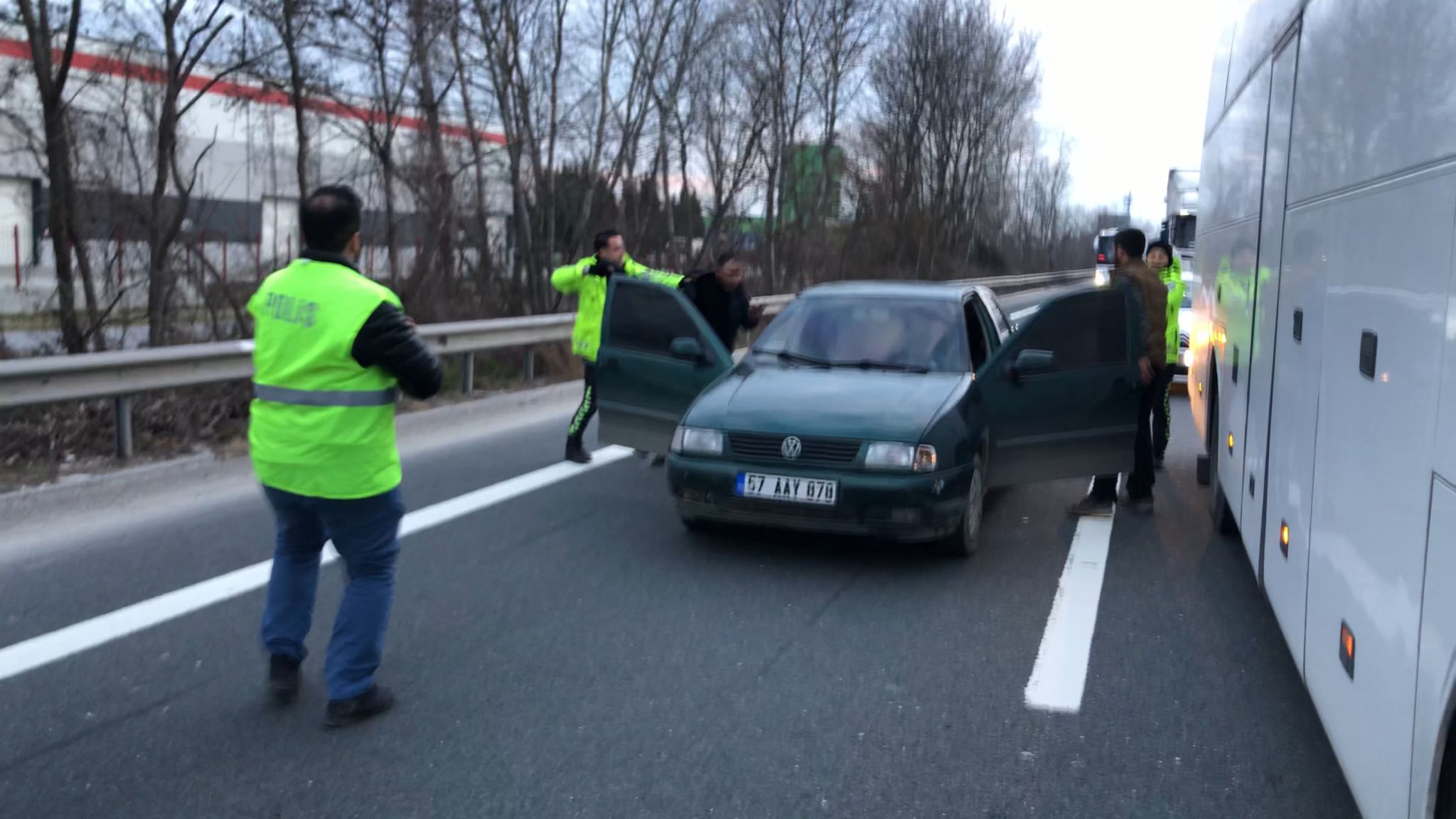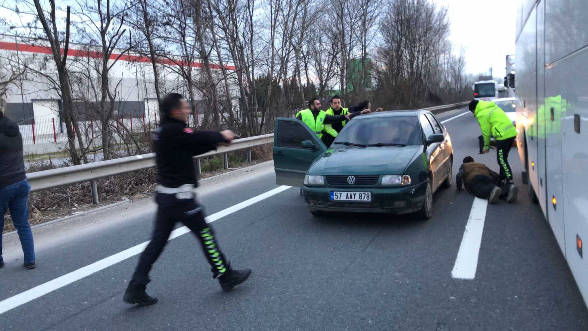 TEM Otoyolu Sakarya geçişinde Sakarya İl Emniyet Müdürlüğüne bağlı trafik polisi ekiplerince durumundan şüphelenilen 57 AAY 878 plakalı bir otomobil durduruldu. Trafik ekiplerinin dikkatinden kaçmayan araçta bulunan E.Ö. (36), T.G. (25) ve M.P. (29) isimli 3 şahıs otoyolun ortasında nefes kesen operasyonda gözaltına alındı. Yaralama ve tehdit başta olmak üzere en az 5 adet suç kayıtlarının bulunduğu öğrenilen 3 şahsın Sinop’ta ki olayın şüphelileri olduğu tespit edildi. Şahıslar tamamlanan işlemlerinin ardından Sinop’a sevk edildi.