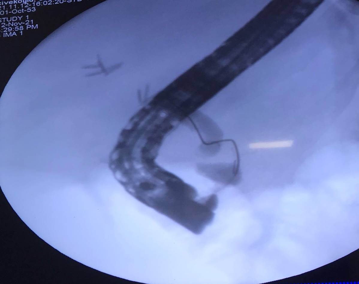 Safra yolu yaralanmaları ve diğer hastalıkları konusunda birlikte çalışmalar yapan İç Hastalıkları Anabilim Dalı Öğretim Üyeleri Doç. Dr. Serkan Torun, Dr. Öğr. Üyesi Salih Tokmak ve Genel Cerrahi Anabilim Dalı Dr. Öğretim Üyesi Mehmet Fuat Çetin, hastaya yaptıkları değerlendirmede bu aşamadaki bir hastada ERCP işleminin imkansız olduğunu, yüzde 30 civarında komplikasyonu olan hepatikojejunostomi ameliyatı (karaciğere ince bağırsak dikilmesi) olması gerektiğini belirledi. Ancak hastanın önceki operasyonun yeni olması nedeniyle bu büyük bir ameliyattan önce safranın, ciltten karaciğere yerleştirilen bir tüp vasıtasıyla torbaya akmasının sağlanması gerektiğine karar verildi.