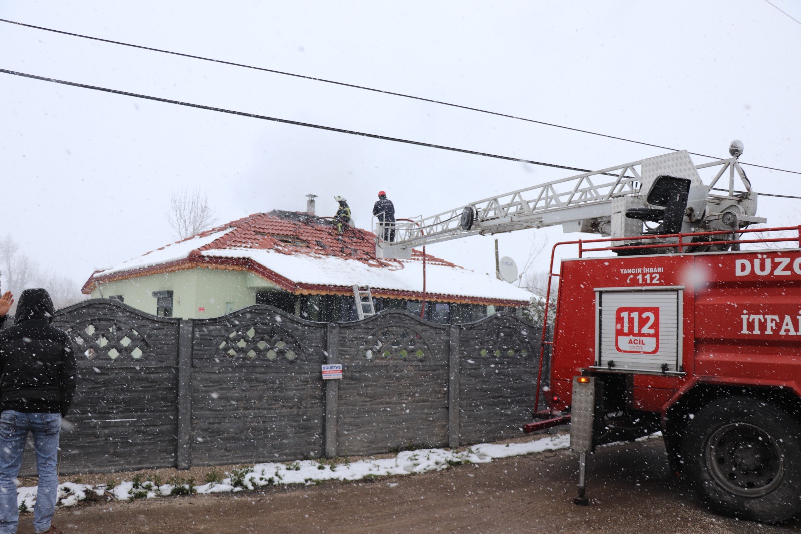 Altınpınar Köyü’nde tek katlı evde yangın çıkan yangın için Düzce Belediyesi İtfaiye Müdürlüğü ekipleri 7 dakikada vaka mahalline ulaştı. Tek katlı evin çatısında çıkan yangına müdahale eden ekipler kısa sürede yangını kontrol altına alarak büyümesini engelledi. Yoğun kar yağışı altında yangına müdahale eden ekipler, 1 buçuk saat süren soğutma çalışması sonrasında yapılan incelemede, yangına çatıdaki bacaya yakın ağaçların yol açtığını tespit etti.